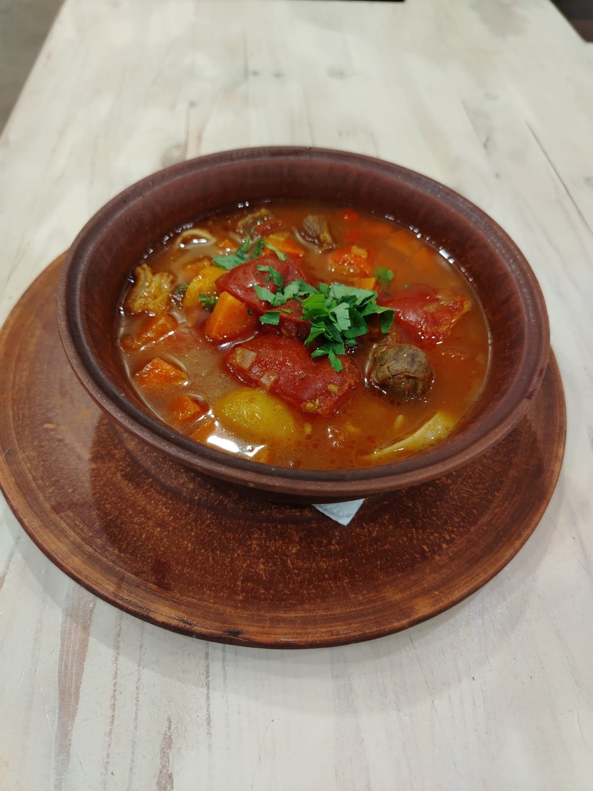 Легендарное кавказское блюдо - Хашлама, состоящее из тушеного мяса, большого количества зелени и овощей.