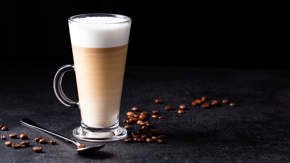 Нежный кофе латте с молоком и лёгкой пенкой.