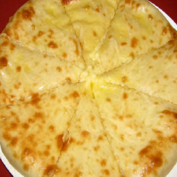 Традиционная круглая лепешка из тонкого, дрожжевого теста с тянущейся начинки из осетинского сыра.
