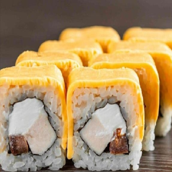 Роллы «Чикен Чиз» представляют из себя наружный слой с тянущим сыром, начинка из риса, курицы, рыба отсутствует.